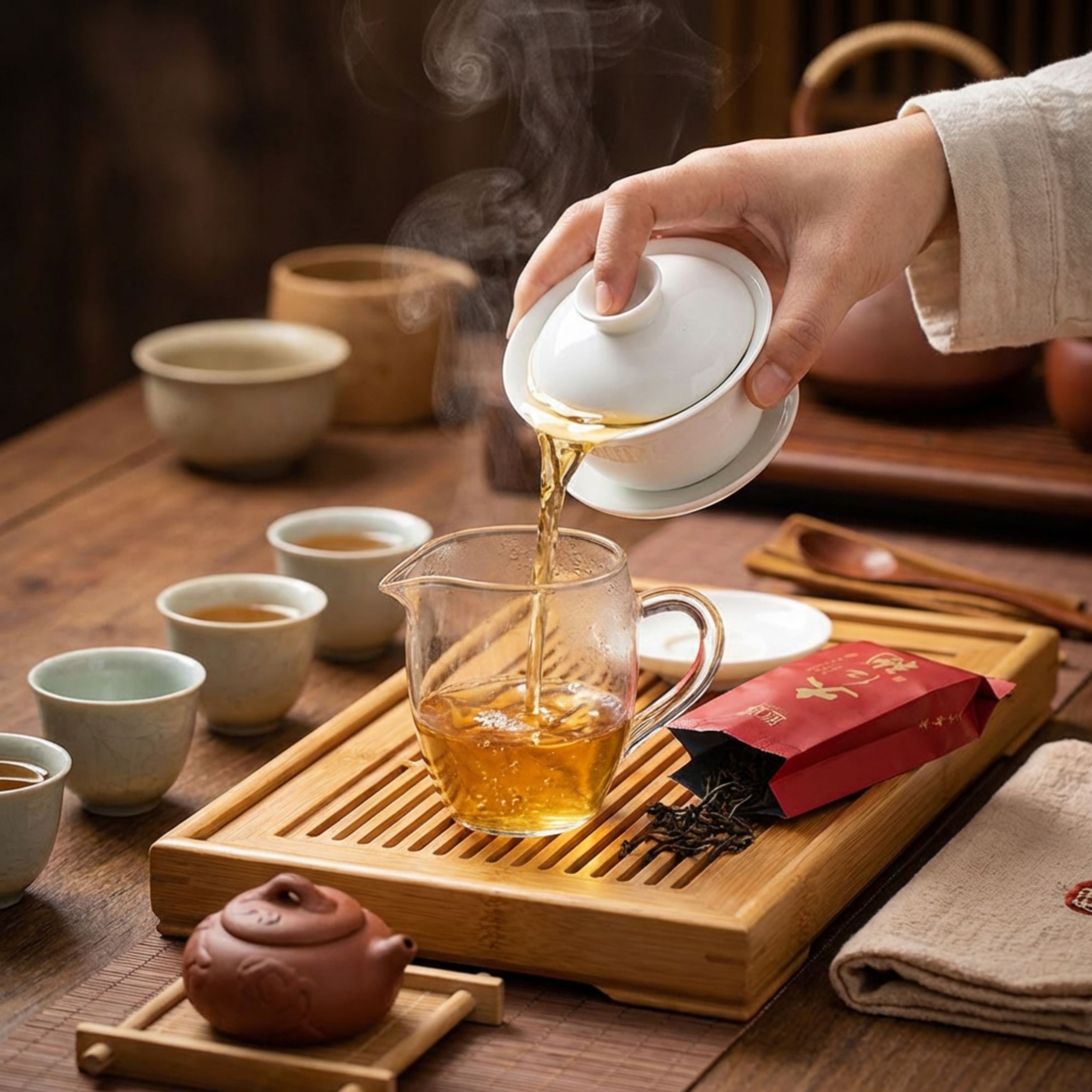 出汤:前3泡快进快出(5-10秒),后续冲泡时,可以根据个人口味逐泡延长闷泡时间。