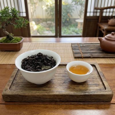 浓香型大红袍,其香气浓郁且厚重,散发着奶油香、木质香等,虽不显清高,但杯底香(挂杯香)却异常出色,香气浓沉厚重;冲泡后汤色橙黄明亮,叶片红绿相间;品尝时,其滋味醇厚、甘甜圆润,岩韵足且耐泡。这种类型的大红袍更适合那些经常品茶的茶友们。