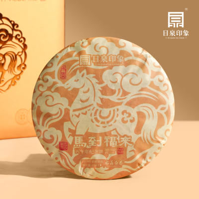 丙午马年,以茶纪岁。撷取2019年春季磻溪高山老树寿眉,借其强韧生命力与醇厚底蕴,经七年光阴缓慢转化,终成这块饱含时间印记的生肖纪念饼。老树根系深扎,凝山川灵气,赋予茶汤更绵长的韵味与能量。橙黄礼盒,如鎏金岁月,熠熠生辉。封面骏马图气势昂然,鬃毛飞扬,似欲破盒而出,寓“骏马追风,福运随行”之美意。“马到福来”四字吉言,是对收礼人最真挚的祝福,亦是佳节赠礼、商务往来的上佳之选。 |